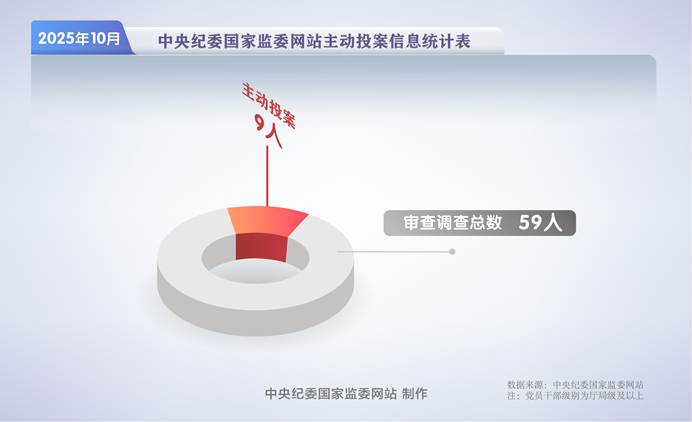 2025年10月,中央纪委国家监委网站发布的审查调查信息中,9名党员领导干部系主动投案。
