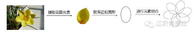 提取金线番红花花瓣元素,进行组合,形成花瓣,再加入“青年”元素